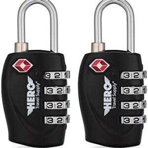 Hero Luggage Lock (2-Pack) – TSA Approved – 4 Digit Combination Padlock for Travel, Suitcases, Lockers, Backpacks