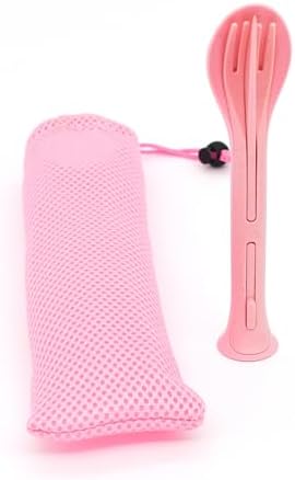 Portable Camping Utensils Set: Reusable Cutlery and Utensils Case for Travel, Work, and Lunch – Silverware Kit for Outdoor and Office Use, Eco-Friendly and Sustainable (Pink)