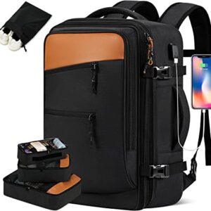POWAITER Large Travel Backpack for Women Men Fits 17 Inch Laptop, Airline Approved Carry On Backpack with 4 Packing Cubes-Black
