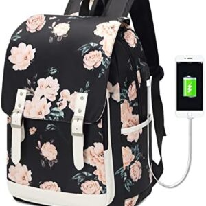 Pawsky Laptop Backpack for Women Girls, Stylish College School Backpack with USB Charging Port Water Resistant Casual Daypack, Floral
