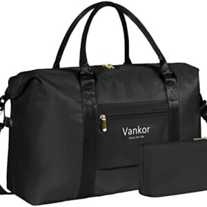 Large Duffle Bag for Travel Waterproof 21 Inch, Vankor Gym Duffel Bag for Women Men Durable Carry on Weekender Overnight Sports Luggage Weekend Beach Yoga Workout Hospital Mommy Diaper Bag Black