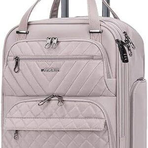 KROSER Carry On Underseat Multi-functional, 16-inch Underseater Lightweight Overnight Suitcase for Women, Dusty Pink