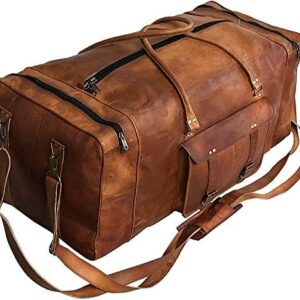 Large Leather 32 Inch Luggage Handmade Duffel Bag Carryall Weekender Travel Overnight Gym Sports Carry On For Men And Women (32 inch)