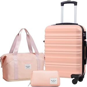 LONG VACATION Luggage Sets 20 IN Carry on Suitcase ABS Handshell Luggage 3 Piece Set with TSA Lock Spinner Wheels (PINK, 20-Inch)