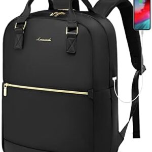 LOVEVOOK Laptop Backpack for Women Teacher Nurse Bag, 15.6 Inch Womens Work Bags, Waterproof Travel Backpack Purse, Business Computer Laptop Bag with USB Port, Black