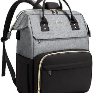 LOVEVOOK Laptop Backpack for Women, 17 Inch Computer Business Stylish Backpack Purse, Doctor Nurse Bags for Work, Casual Daypack Backpacks with USB Port, Grey-Black