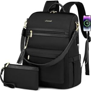 LOVEVOOK Laptop Backpack Women,15.6 Inch Convertible Backpack Purse for Women with USB Port,Fashion Teacher Nurse Bag Work Backpack with Cute Wristlet Bag for Travel College Commute,Black