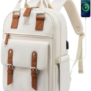 LOVEVOOK Laptop Backpack for Women,Vintage Work Business Travel Backpack with USB Charging Port,Teacher Doctor Nurse Computer Bag Purse College Backpack,15.6 Inch,Beige-Brown