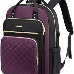 LOVEVOOK Laptop Backpack Purse for Women, 15.6″ Laptop Bag for Travel with USB Port, Water Resistant Lightweight Daypacks for College Work Business, Nurse Teacher Computer Bags, Purple Black