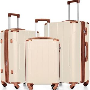 Merax Suitcases With Wheels Hardside Luggage Sets 3 Piece, Expandable And Lightweight, Travel Suitcases For Woman And Man (White Brown)