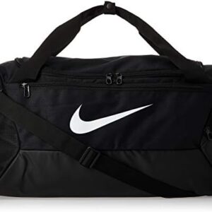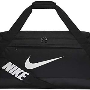 • Nike Brasilia Training Duffel Bag, Versatile Bag with Padded Strap and Mesh Exterior Pocket, Medium, Black/Black/White