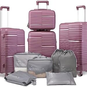 • MYER Luggage Sets 4 Piece with 6 Set Packing Cubes – Lightweight PP Hardshell Suitcase with Spinner Wheels, TSA Lock (RosePurple)