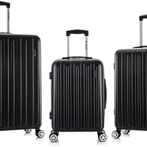 Rockland Prague Hardside Luggage with Spinner Wheels, Black, 3-Piece Set (20/24/28)