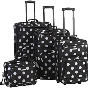 Rockland Polka Softside Upright Luggage Set, Expandable, Lightweight, Black Dot, 4-Piece (14/19/24/28)