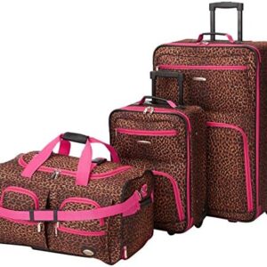 Rockland Vara Softside Upright Luggage, Pink Leopard, 3-Piece Set (20/22/28)