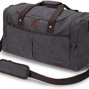 S-ZONE Canvas Duffel Bag for Travel 45L Weekender Overnight Bag with Shoes Compartment for Men (Grey)