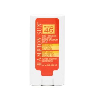 Hampton Sun SPF 45 Mineral Face Stick, 67 oz. – Sheer, Non-Whitening Broad Spectrum Sunscreen Stick, Infused with Avocado Oil for Brightening Hyperpigmentation, Vegan Luxury Sunscreen Stick