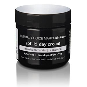 Natural SPF-15 Day Cream by Herbal Choice Mari (Translucent White, 2 Fl Oz Jar) – Made with Organic Ingredients – No Toxic Synthetic Chemicals – TSA-Approved Travel Size