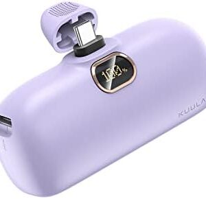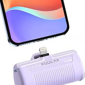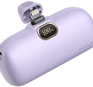 Kuulaa Mini Portable Charger iPhone 5000mAh Plug-in Portable Phone Charger Ultra-Compact Battery Pack Charger Portable with LCD Display for iPhone Series, Purple