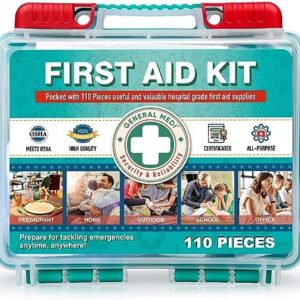 General Medi 110 Pieces Small First Aid Kit – HardCase First Aid Box – Contains Premium Medical Supplies for Travel, Home, Office, Vehicle, Camping, Workplace & Outdoor