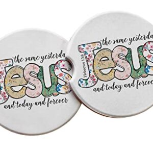 Jesus the Same Yesterday Today and Forever – Pair of Absorbent Christian Ceramic Car Coasters – Inspirational Gifts for Women