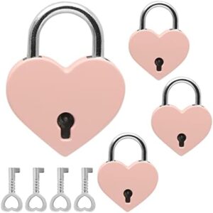Jiozermi 4 Pcs Pink Padlocks Key Lock with Key, Mini Love Heart Head Luggage Locks, Modern Fashion Style