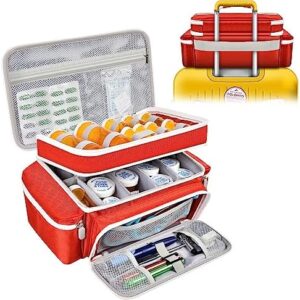 Large Medicine Organizer Bag Box – Empty First Aid Kits Bags for Emergency. Pill Bottle Storage Container, Medical Supplies Case for Home, Travel, Outdoor, Office, Car, Camping, Hiking, Boating