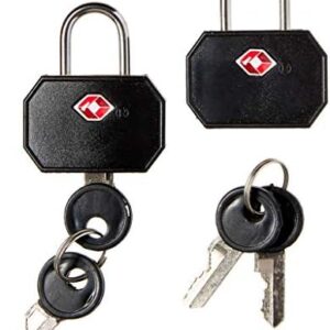 • Lewis N. Clark Travel Sentry TSA Lock + Mini Padlock for Luggage Suitcase, Carry On, Backpack, Laptop Bag, Purse, Airport, Hotel & Gym (Includes 4 Keys), 2-Pack, Black