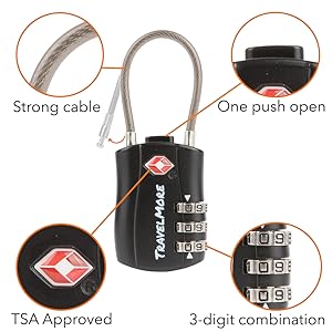 MOST DURABLE TSA APPROVED AND RECOGNIZED LOCK: All TravelMore travel locks are 100% travel sentry certified and designed from the ground up to be the strongest and reliable luggage locks in the market. TSA screeners are issued codes and tools for secured access to open the locks. Our special high strength zinc alloy lock bodies, hardened steel shackles and patented internal mechanisms can take so much force that we back our product up with an 100% lifetime warranty.