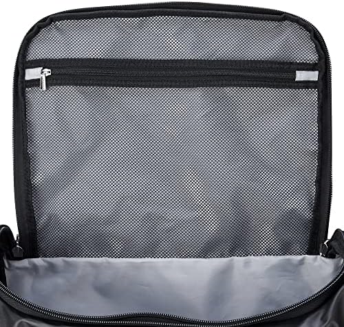 50-50 opening with two equal size compartments for easy organization; two large exterior pockets to store shoes or return-home laundry and a smaller one for accessories