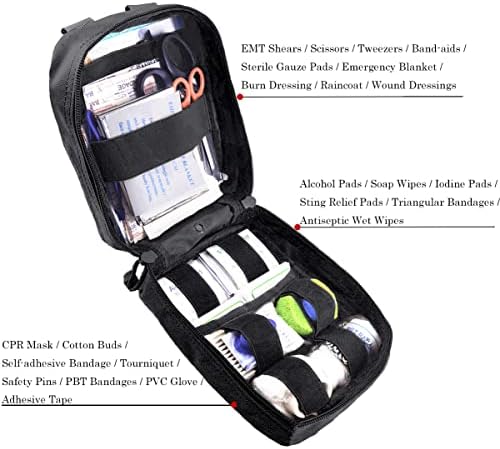 EMT Pouch MOLLE Ifak Pouch Tactical MOLLE Medical First Aid Kit Utility Pouch Carlebben (with Medical Supplies)