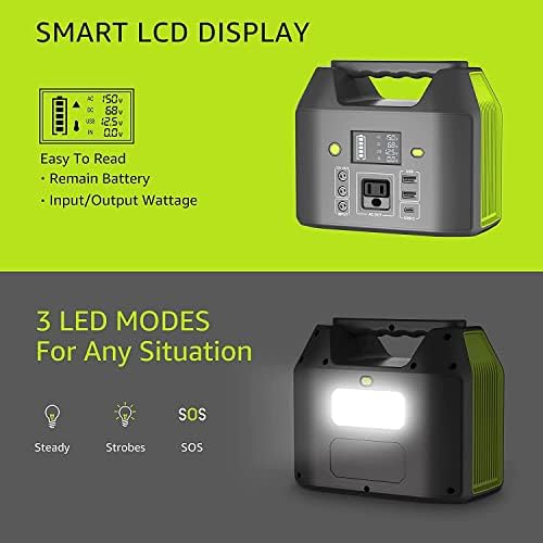 ✅CLEAN POWER ADVANCED DESING: The battery bank built with a LCD screen will tell you the output and input at any time, give you warning when something goes wrong. Designed a LED light on the back with 3 modes: steady, strobes, SOS, suitable for your outdoor camping, home use, balckout and emergency.