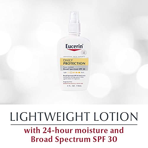 Eucerin Daily Protection Face Lotion – Broad Spectrum SPF 30 – Moisturizes and Protects Sensitive, Dry Skin – 4 fl. oz. Pump Bottle