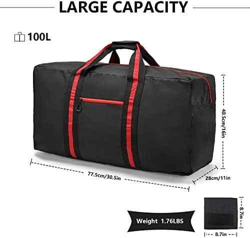 🎁MULTIPURPOSE DUFFLE BAGS — Collapsible duffle bag for travel to easily held all your gym or travel items, could be served as a sports gym luggage, weekender bag, oversize travel bag, military duffle bag, overnight bag, oversize travel bag, airplane duffle and a daily bag, camping duffle bag, ideal for storage car, house-moving or any other outdoor activity