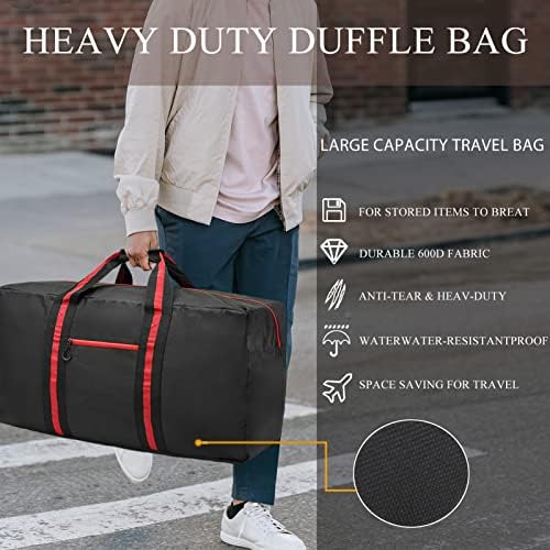 🎁LONG TIME USE — Our extra large duffle bag for travel adopts thickened, widened, and extended high-density 3 inches extra wide webbing to the bottom of the bag, which is anti-tear and wear-resistant, to improve the safety of your items. Also, with a padded fabric handle, it is more comfortable to carry your heavy stuff