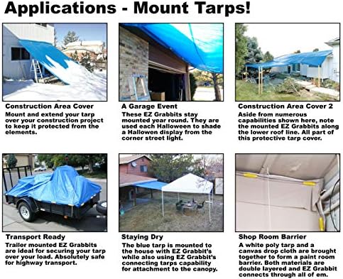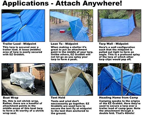 Shop and compare the patented tech of EZ Grabbit to other tarp tie downs (tarp clips) and you’ll find: mounting to surfaces, connecting tarps together, attaching anywhere to any material is unique to EZ Grabbit. Additionally, the smooth gripping edge won’t damage you tarps or materials allowing your tarp using imagination to run wild!