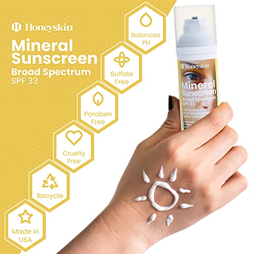 LIGHTWEIGHT & NON-GREASY FORMULA – Honeyskin mineral sunscreen for face is made with the highest quality ingredients that provide superior sun protection while keeping your skin feeling light & fresh. This sensitive skin sun block features a non-greasy formula that glides on smoothly, leaving no oily residue behind.