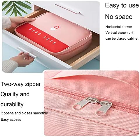 【 Sensible Design 】 The built-in compartment storage design helps you find what you need quickly. The front of the medicine assistance kit has a hand-embroidered medicine logo so that it can be found quickly in case of an emergency; Double zipper, open and close smoothly, portable design, does not occupy space.