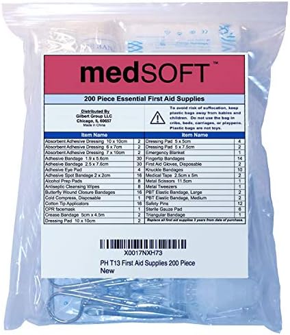 The medSoft first aid kit refill comes jam-packed with the following items: 200 Piece First Aid Kit College: Absorbent Adhesive Dressing, large (2), Absorbent Adhesive Dressing, medium (2), Absorbent Adhesive Dressing, small (2), Adhesive Bandage, standard size (30), Adhesive Bandage, small size (30), Adhesive Eye Pad (4), Adhesive Spot Bandage (16), Prep Wipes (8), Disinfectant Wipes (8), Butterfly Wound Closure Bandages (16), Cold Compress, Disposable (1), Cotton tip applicator (16), CPR Facemask (1), Crease Bandage (2), Dressing Pad, large (2), Dressing Pad, medium (2), Dressing Pad, small (4), Emergency Blanket (1), Fingertip Bandages (14), First Aid Gloves, Disposable (2), Knuckle Bandages (10), Medical Tape, 2.5cm x 5m (2), Metal Scissors (1), PBT Elastic Bandage, large (2), PBT Elastic Bandage, medium (2), Safety Pins (12), Sterile Gauze Pad (6), Triangular Bandage (1). Your purchase of your first aid kit for dorm rooms is insured with a 1-year warranty money back guarantee: All first aid kits for college students by MedSoft come with a 1-year no-questions-asked money back guarantee! Our first aid kit refill makes sure you always have the most commonly worn out first aid items on hand, with 200 pieces of medical supplies. Pick up your first aid kit camping today, and be prepared for any situation. Our first aid kit travel pack comes handy wherever you go. This first aid kit refill contains a full supply pack, so be sure to always be prepared for any situation wherever you go.