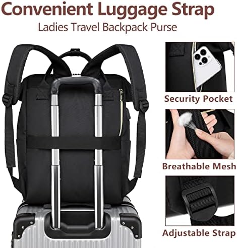 Functional Luggage Strap & Hidden Security Pocket: Luggage strap on the back of the work backpack can be inserted and secured to the handle of the luggage, freeing your hands on a business trip. The women work bag is enough to easily fit under the seat on the plane for you to take laptop and all other daily necessities. And work travel backpack for women has a anti-theft pocket on the back to keep phone or card safe. Lots of handy features make life easier