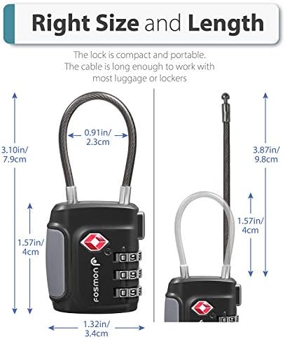 The body of the lock is made of a light, sturdy zinc alloy. The steel cable is strong and flexible enough to navigate through small zipper holes. With a cable length of 4 inches, and an inner loop size of 1.6 x 0.9 inches when locked, the lock is not only the perfect size for luggage or suitcases, but also great for gym lockers, gun cases, laptop bags, and more.