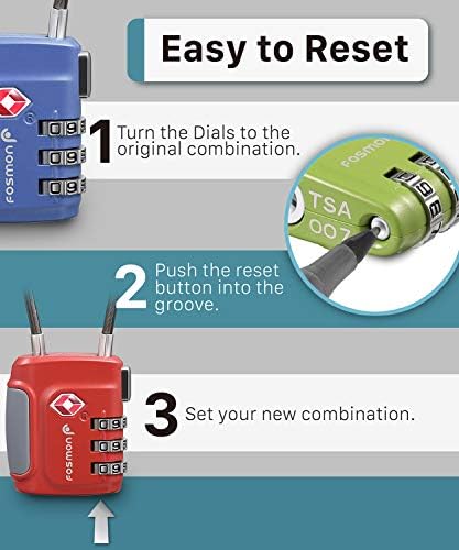 [VERSATILE LOCKS WITH BRIGHT COLORS] The Fosmon TSA luggage pack has four distinct color locks that can prevent the combinations mixed up, and easy to identify checked luggage. Multiple locks ideal for family traveling, backpack, suitcase, bags, lockers and more.