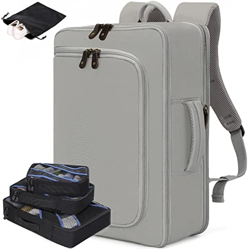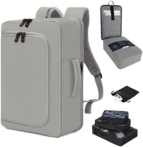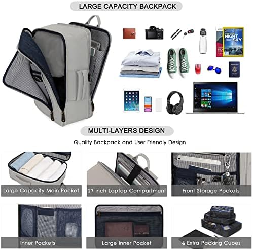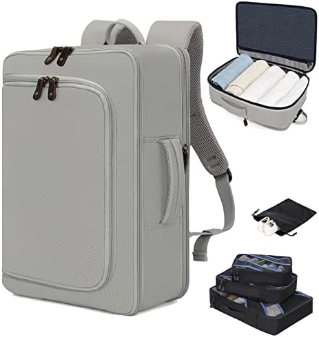 【ADDITIONAL 4 STORAGE BAGS】This travel backpack comes with extra 4 storage bags. The large cube for jackets, sweaters, trousers. Medium cube for shirts, shorts, blouses, Small cube for underwear, socks or toiletries and the waterproof bag can hold shoes or other small things. You can easily keep the travel items into this carry on luggage backpack. Serve you well as carry on bags for airplanes, weekender backpack, personal item travel bag, overnight bag.