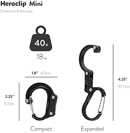 COMPACT DESIGN: Hook and clip nest together when not in use. SIZE MINI gate clearance 1.1″, hook clearance 1.5″, dimensions when open 1.8″ x 4.6″.