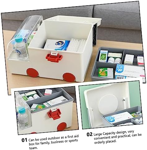 Medicine kit box: the upper and lower double layer is clearly classified in one second, and the first layer can be used for emergency medicines, etc.; the second layer is deep, and the commonly used medicine cabinet organization medicines can be placed.