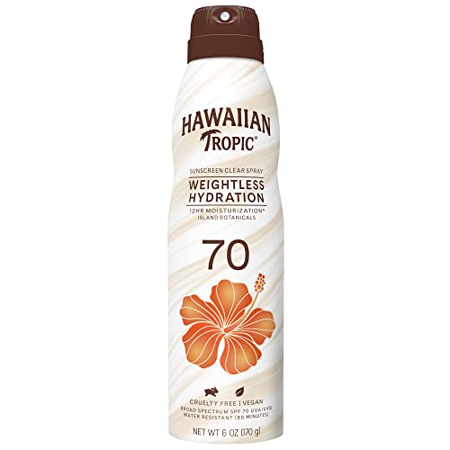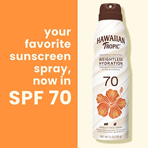 Hawaiian Tropic Weightless Hydration Sunscreen Spray SPF 70, 6oz | High Sunscreen, Oxybenzone Free On Body