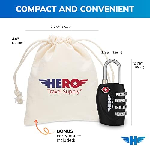 EASY TO USE AND SET UP – HERO luggage locks feature easy-to-read dials, custom combination settings, and a small and sturdy, premium design perfect for locking up your bags and protecting your things on the go.