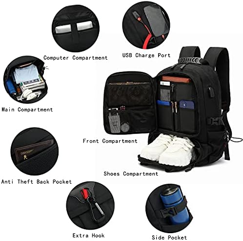 INSAVANT Travel Backpack for Mens 18.3 Inch with Laptop Sleeve and Shoe Compartment, Computer Backpacks with USB Charging Port, Durable Hiking Work Business Daypack for Women