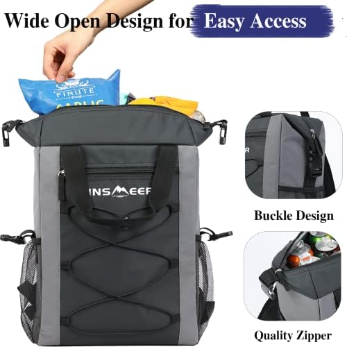 Multi-Pockets for more storage space: Our insulated leak proof cooler backpack has 1 large opening main pockets where you can storage your cold food, ice cube and other food. One zippered pcoekt on the front is for your personal small item. One elastic rope on the front for towels or picnic mat. 2 side mesh pocket are perfect place to storage your wine bottle or umbrellas. The backpack cooler bag provides more convenience for your travel.