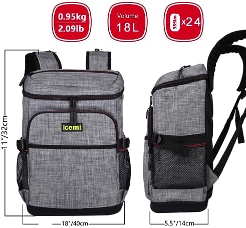 【Large Capacity Backpack】The internal dimensions of the backpack are 11” x 5.5” x 18”( L x W x H ), and the 18L capacity can hold up to 24 cans (330ml). There is plenty of room for all your essentials. The package comes with a tissue box and 1 bottle opener on the strap for outside use.